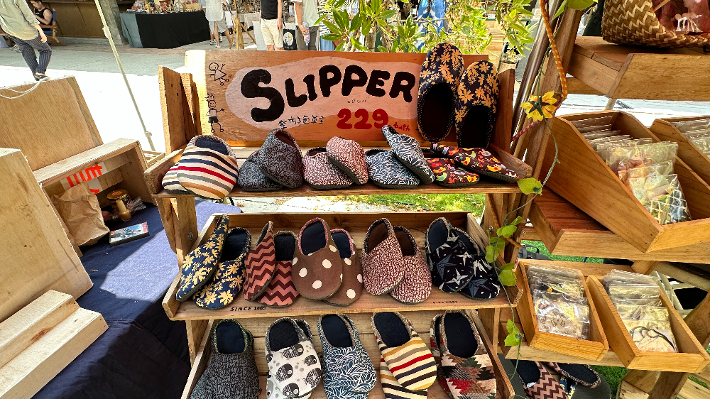도착한 시간이 아침 10시쯤 이었는데 벌써부터 햇빛이 쨍쨍 나고 더워지네요 ㅎㅎ 들어가자마자 보이는 예쁜 슬리퍼와 독특한 천가방~